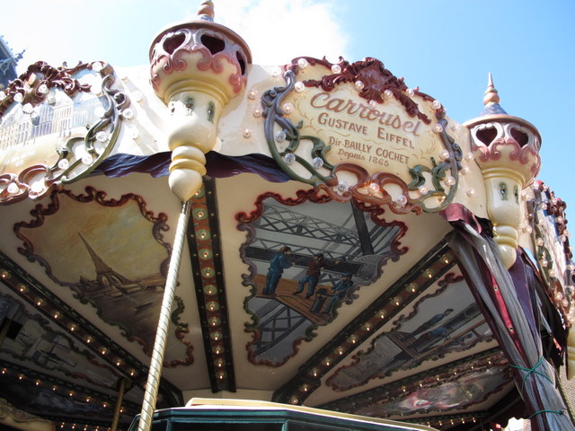 The boys were captivated by this turn-of-the-century carousel, honoring the Eiffel Tower with a transportation theme.